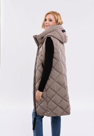 Béžová prošívaná dlouhá vesta