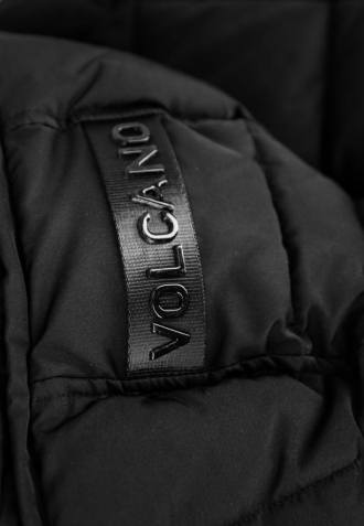 - odnímatelná kapuce s ozdobnou stuhou a nápisem Volcano