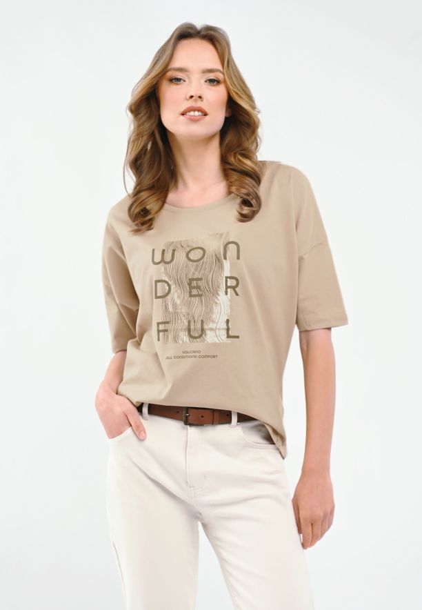 Tričko T-WONDERFUL je nejlepším důkazem toho, že oblečení jednoduchého střihu nemusí být nuda. Tričko má 3/4 rukávy, mírně prodloužená záda, sníženou linii ramen a volný střih, díky čemuž je vhodné pro ženy, které ocení oversized oblečení.