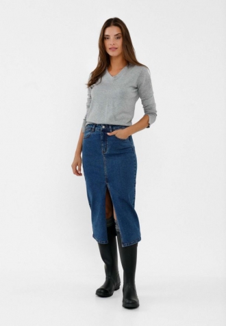 Svetr S-NELI vyrobený z hladkého úpletu zaujme jednoduchým, ale stylovým designem. Jeho slim fit design zdůrazňuje ženské tvary a výstřih do V dodává jemnost a ženský šarm. Široké žebrované manžety a lem poskytují nejen perfektní padnutí, ale také odolnost, takže si ji užijete po mnoho sezón. Za zdůraznění stojí, že manžety mají decentní, ozdobné rozparky a svetr s výstřihem do V je dostupný i ve velkých velikostech.