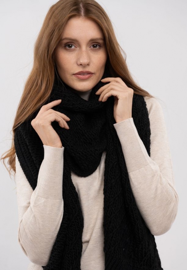 Černá zimní šála tvoří sadu s čepicí H-BIU ve stejné barvě.
