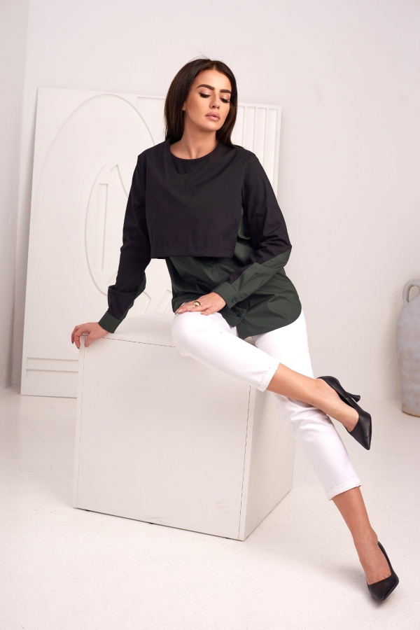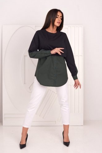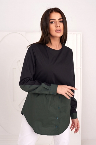 Model: AMUR Barva: zelená,černá Střih: volný Výstřih: půlkulátý Rukáv: dlouhý