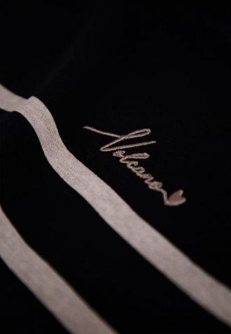 Mikina navíc vyniká svými detaily. V první řadě jsou to barevné pruhy táhnoucí se středem i středem rukávů. Vnitřní strana límce je lemována ozdobným lemováním a na přední straně je decentně vyšité logo Volcano s charakteristickým srdcem, které mikině dodává jedinečný nádech.