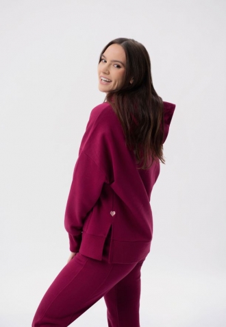 B-LOVE je dámská mikina s oversize střihem. Tato módní mikina je v krásné tmavě růžové barvě a zespodu má nadýchaný povrch. Díky tomu je hřejivá a příjemná na dotek. Je vyrobena z bavlny s polyesterem, takže poskytuje pohodlí a v kombinaci se sníženou linií ramen také volnost pohybu.