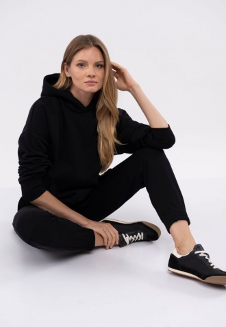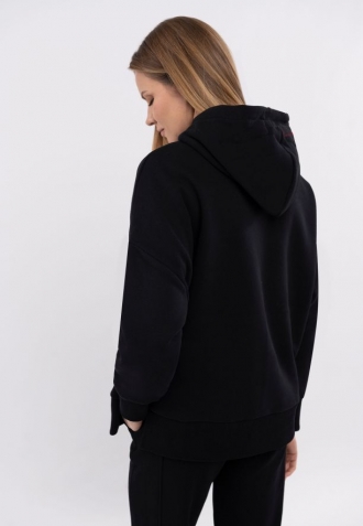 B-LOVE je dámská mikina s oversize střihem. Tato módní mikina je v krásné černé barvě a zespodu má nadýchaný povrch. Díky tomu je hřejivá a příjemná na dotek. Je vyrobena z bavlny s polyesterem, takže poskytuje pohodlí a v kombinaci se sníženou linií ramen také volnost pohybu.