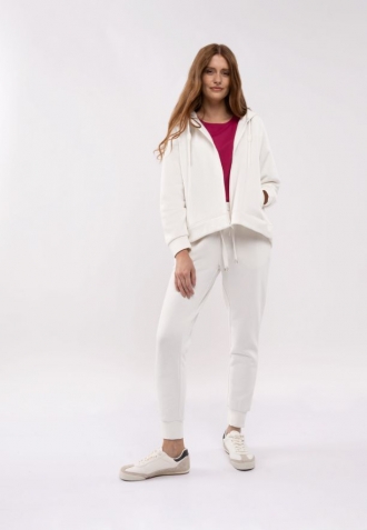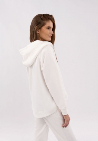 Mikina B-TIFFI je dámská mikina volného střihu s kapucí. Mikina krémové barvy má oversize střih, široký spodní lem a raglánové rukávy, které zdůrazňují módní charakter mikiny. Kromě ležérního střihu se mikina vyznačuje velkou a obepínající kapucí.