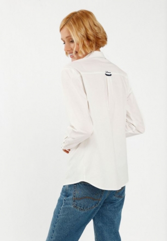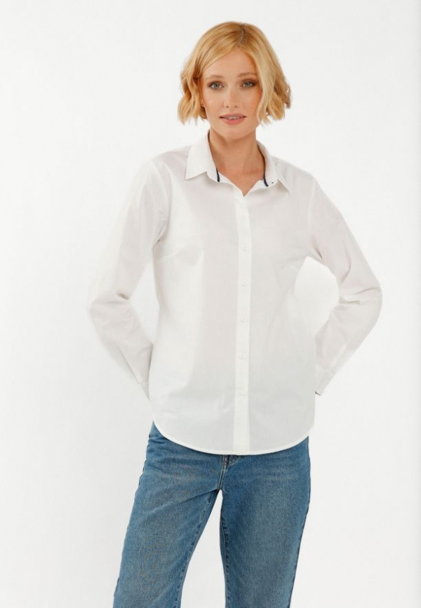 K-SWAN je dámská košile v bílé barvě. Jak víte - bílá košile je klasika, která nikdy nevyjde z módy. Je vyrobena z přírodního, pružného materiálu (95 % bavlna, 5 % elastan) a poskytuje pohodlné nošení po celý den. Tato dámská bílá a nadčasová košile má střih Regular Fit, který zaručuje volnější střih, jenž zvýrazňuje siluetu, aniž by omezoval pohyb. Klasický límec a knoflíková léga jí dodávají elegantní vzhled, který se skvěle hodí jak do kanceláře, tak na běžnější vycházky.