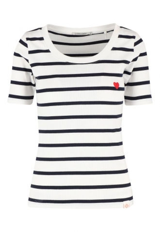 Hledáte trendy pruhované tričko? Vyberte si dámské tričko T-VALENTINE. Je vyrobeno z žebrované, pružné tkaniny, která se dokonale přizpůsobí siluetě a zajistí celodenní pohodlí. Střih Slim Fit zdůrazňuje ženské křivky, zatímco pruhovaný vzor působí módním, ležérním dojmem. Kulatý výstřih a krátké přiléhavé rukávy mu dodávají univerzálnost, takže se skvěle hodí pro každodenní stylizaci ke kalhotám i sukním.