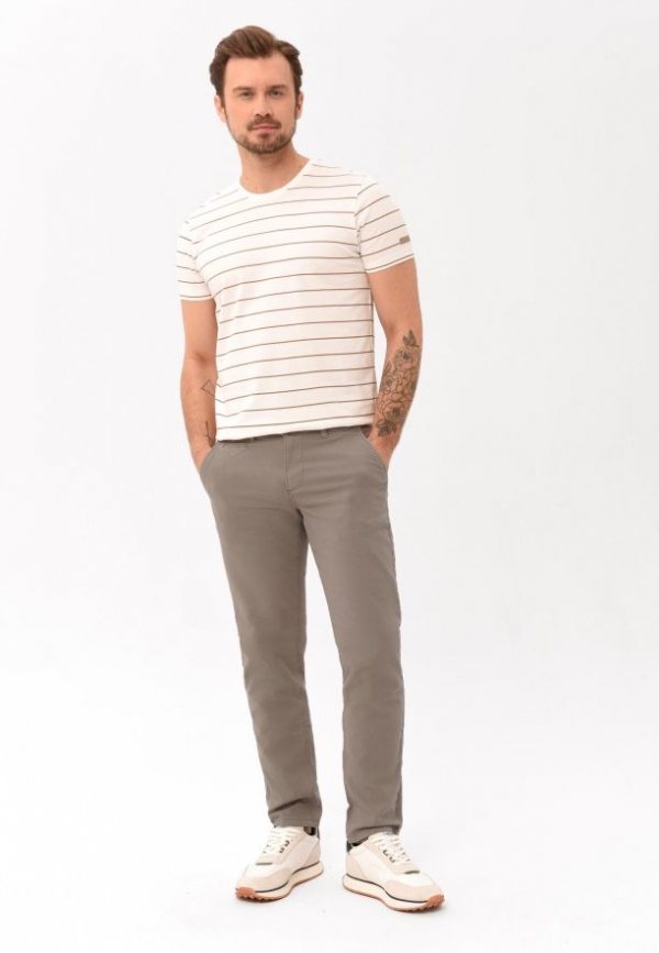 Pánské kalhoty R-PARKS mají nadčasový design, který se hodí ke všemu! Všestrannost není jedinou vlastností těchto kalhot. V první řadě jsou pohodlné. Béžové kalhoty R-PARKS mají rovný střih, což znamená, že kalhoty nejsou ani příliš těsné na postavu, ani příliš volné. Tento střih je vhodný pro muže s klasickým tvarem postavy. Kalhoty R-PARKS jsou klasické chinos kalhoty se dvěma šikmými kapsami a jednou malou kapsičkou vpředu a dvěma průhmatovými kapsami s knoflíkem vzadu. Zajímavou ozdobou je i vazba látky - materiál má mírně vypouklou strukturu!