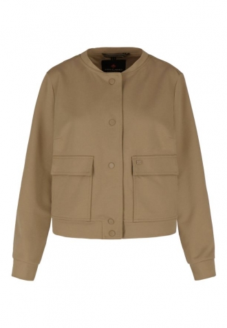 Tato dámská bunda typu bomber je kombinací pohodlí a moderního stylu. Střih připomíná bundy typu bomber. Krátká béžová bunda je vyrobena z hladké tkaniny - směsi viskózy, polyesteru a elastanu. Díky přírodním viskózovým vláknům je tkanina vzdušná a měkká, zatímco přídavek polyesteru a elastanu zajišťuje odolnost a pružnost, takže se bunda přizpůsobí postavě, aniž by omezovala v pohybu.