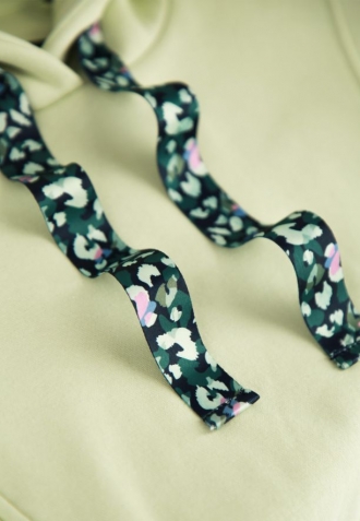 Dámská mikina má prostornou kapsu na břiše. Jedná se nejen o praktický doplněk, ale také o prvek, který podtrhuje ležérní charakter mikiny. Kapuce s barevnými pásky dodává odlišnost a umožňuje individuální přizpůsobení, zatímco ozdobné prošití na přední a zadní straně je výrazným detailem mikiny B-ELEVEN.