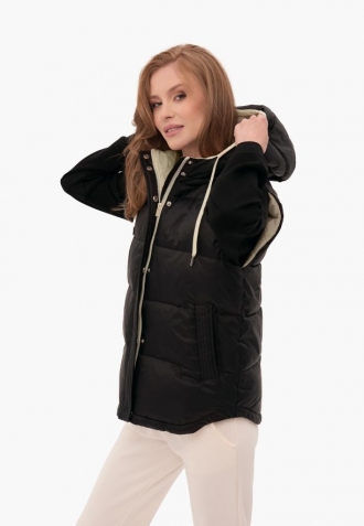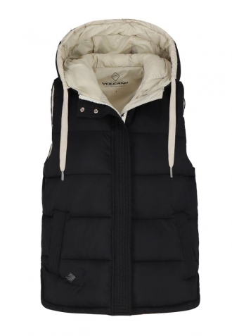 Dámská vesta V-AVRIL v černé barvě je ideální jako další vrstva v přechodném období. Široké prošívání udržuje výplň na svém místě a poskytuje příjemné teplo. A zapínání na zip skryté pod lemem na patentky poskytuje dodatečnou ochranu proti větru, dešti a chladu. Dvě kapsy na zip jsou praktickým řešením pro bezpečné uložení drobných předmětů. Zaoblený spodní lem dodává vestě ležérní, mírně oversized vzhled.