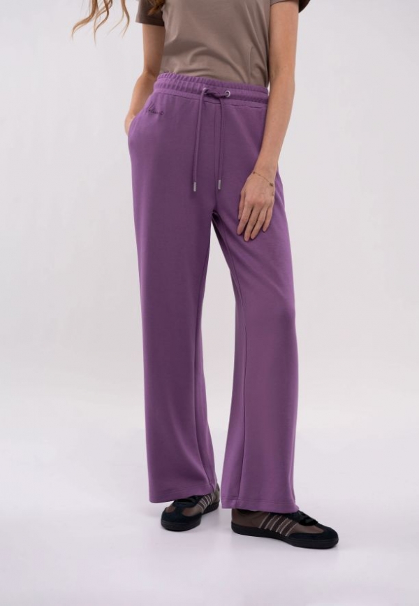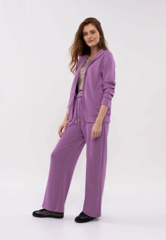 N-LILU jsou dámské tepláky volného střihu ve vřesové barvě. Dvě otevřené kapsy na bocích poskytují pohodlí a praktičnost, zatímco imitace kapsy na pravém zadečku vzadu dodává sportovní nádech. Díky hladkému povrchu zespodu jsou široké kalhoty příjemné na dotek, což přispívá k jejich pohodlí. Jsou ideální volbou pro pohodové dny doma, procházku nebo volnější každodenní stylizaci.