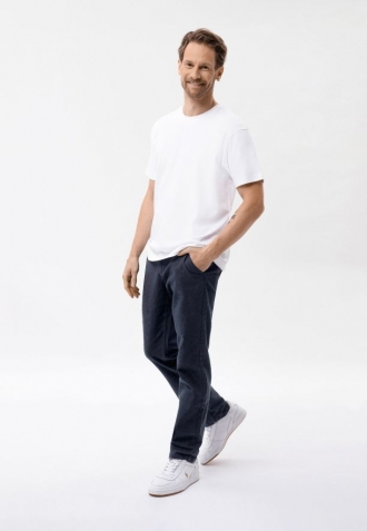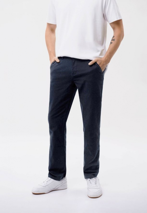 Kalhoty RIVI mají klasický střih a jsou ušity z přírodní elastické tkaniny. Díky kombinaci bavlny a elastanu jsou pohodlné a poddajné a zajišťují pohodlné nošení. Pánské látkové kalhoty mají rovné nohavice, zapínají se na zip a knoflík a mají poutka na pásek.