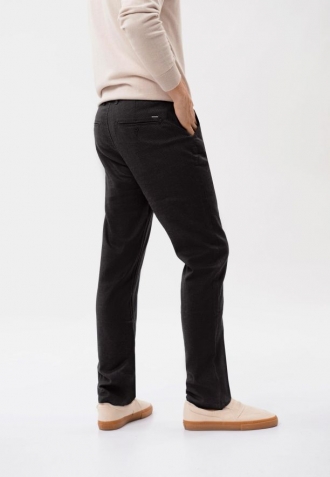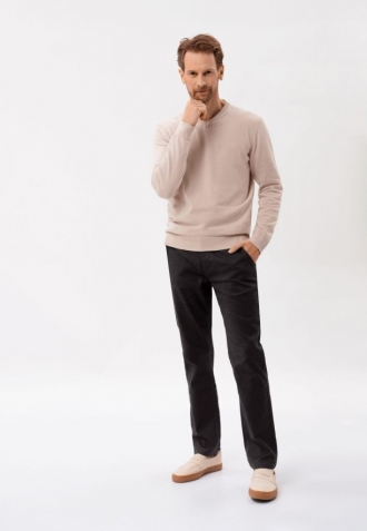Kalhoty RIVI mají klasický střih a jsou ušity z přírodní elastické tkaniny. Díky kombinaci bavlny a elastanu jsou pohodlné a poddajné a zajišťují pohodlné nošení. Pánské látkové kalhoty mají rovné nohavice, zapínají se na zip a knoflík a mají poutka na pásek.