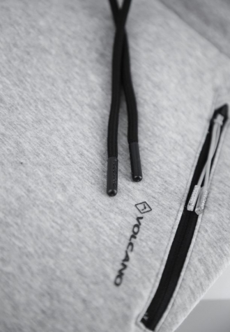 U tohoto modelu jsou kapsy umístěny vpředu. Jsou zde dvě šikmé kapsy na zip. Jedná se o velmi praktické řešení: kapsy na zip bezpečně pojmou nezbytné věci, jako je telefon nebo klíče. Pánské tepláky jsou vyrobeny z lehkého úpletu příjemného na dotek a na přední a zadní straně mají pogumované detaily.