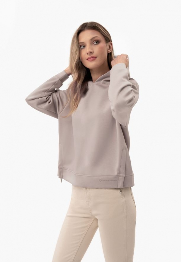 Dámská mikina B-MIDA s volným střihem je vyrobena z pěnové tkaniny, ve které byla přírodní viskózová vlákna smíchána s polyesterem. Tento materiál (hladký spodek) je nejen příjemný na dotek, ale také odolný. Strečová tkanina, oversize střih a volný široký lem vytvářejí pohodlnou dámskou mikinu, která umožňuje volnost pohybu. Vestavěná kapuce dodává sportovní nádech, zatímco žebrované manžety zajišťují lepší přizpůsobení. Je ideální volbou pro ty, kteří hledají praktickou a stylovou mikinu pro každodenní nošení.