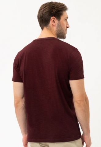 Vínové tričko T-ENDE s potiskem oživí váš šatník. Je to díky kombinaci měkkého přírodního materiálu a originální struktury tkaniny. Díky tomu není pánské tričko jednobarevné, ale má jedinečnou strukturu. Bavlněné tričko je navíc zárukou měkkých a přírodních vláken. Příjemně obepne tělo ve všech ročních obdobích. V létě nepřehřívají pokožku a v zimě jsou dokonalým doplňkem mikiny. Všimněte si také půlkruhového výstřihu zakončeného teplákovým lemem. Ten dokládá sportovní a uvolněný styl trička.