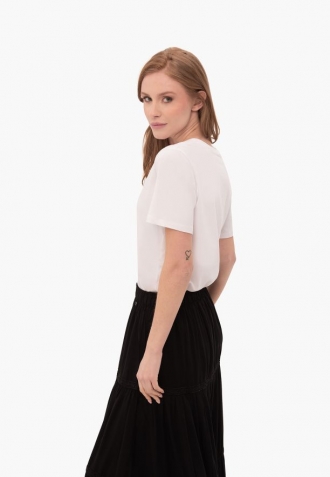 T-LEA je jednoduché dámské tričko, které patří do řady základního oblečení Volcano. Tričko má klasický střih, který zvýrazňuje postavu, ale příliš ji neobepíná. Takové hladké tričko je nezbytnou součástí šatníku každého milovníka nadčasovosti.
