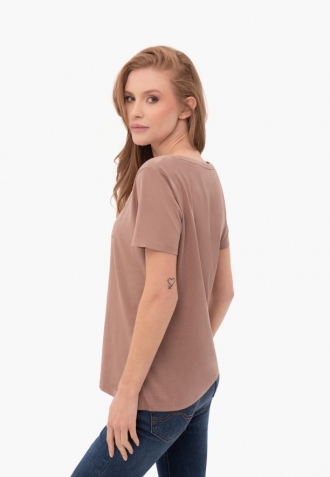 Hledáte volné, ale zároveň ženské tričko pro každý den? Tričko T-NOTE splní vaše očekávání! Vyrobené ze 100% bavlny zaručuje prodyšnost a pohodlí při nošení. Pravidelný střih trička umožňuje volnost pohybu a stylový potisk mu dodává výrazný charakter. Dostupné v univerzálních barvách, včetně netradiční hnědé, tričko s krátkým rukávem se skvěle hodí k džínám nebo sukním a vytváří ležérní outfity pro každou příležitost.
