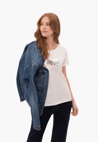 Hledáte volné, ale zároveň ženské tričko pro každý den? Tričko T-NOTE splní vaše očekávání! Vyrobené ze 100% bavlny zaručuje prodyšnost a pohodlí při nošení. Pravidelný střih trička umožňuje volnost pohybu a stylový potisk mu dodává výrazný charakter. Dostupné v univerzálních barvách, včetně klasické bílé, tričko s krátkým rukávem se skvěle hodí k džínám nebo sukním a vytváří ležérní outfity pro každou příležitost.