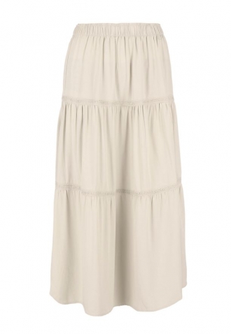 Tato béžová dlouhá sukně je vyrobena ze 100% viskózy. Splývavý přírodní materiál zaručuje pohodlí a prodyšnost a umožňuje pokožce dýchat. Volný, rozšířený střih působí vzdušně a zdůrazňuje ženskou siluetu, zatímco maxi délka jí dodává eleganci. Sukně G-FLAVIA má pohodlný elastický pas pro lichotivý střih.