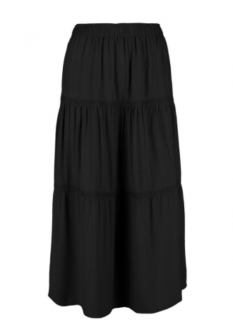 Tato černá dlouhá sukně je vyrobena ze 100% viskózy. Splývavý přírodní materiál zaručuje pohodlí a prodyšnost a umožňuje pokožce dýchat. Volný, rozšířený střih působí vzdušně a zdůrazňuje ženskou siluetu, zatímco maxi délka jí dodává eleganci. Sukně G-FLAVIA má pohodlný elastický pas pro lichotivý střih.