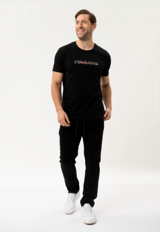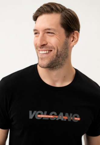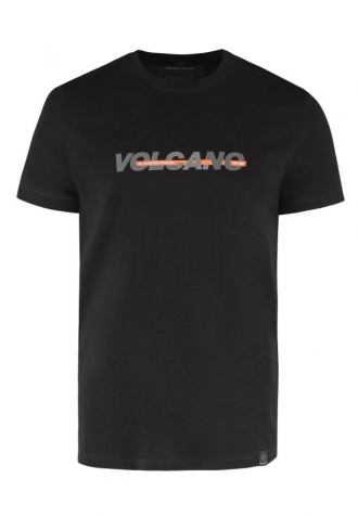 Pánské bavlněné tričko s krátkým rukávem. Tričko má černou barvu a klasický střih. Jeho zvláštností je pogumovaný nápis Volcano na hrudi.