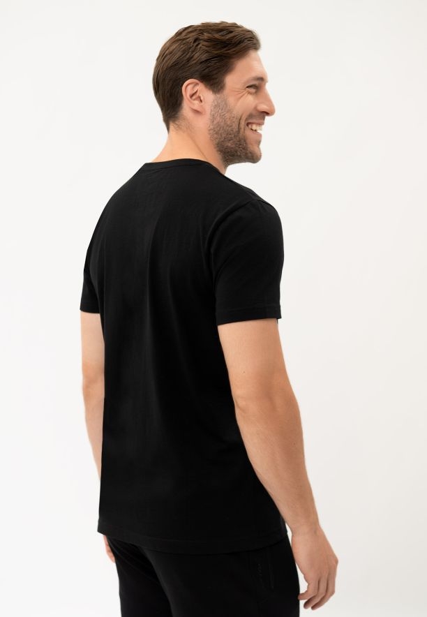 T-NIGHT je pánské tričko, které bylo ušito ze 100% bavlny. Jeho krátké rukávy a spodní lem jsou volné a půlkulatý výstřih byl zpevněn žebrováním, takže se nevytahuje.