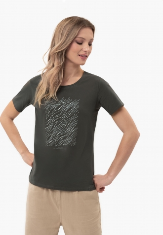 Jemný odstín trička byl navíc ozdoben potiskem s kamínky, díky kterému toto dámské tričko vypadá originálně a poutavě. Díky dostupnosti velkých velikostí si každá žena najde to pravé pro sebe. Hodí se jak k džínům, tak k sukním, což z tohoto trička s krátkým rukávem činí mimořádně univerzální volbu pro každodenní nošení. Rozhodněte se pro kombinaci kvality a módního designu a zvolte toto tričko jako základ pro nejrůznější looky.