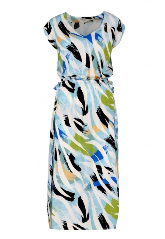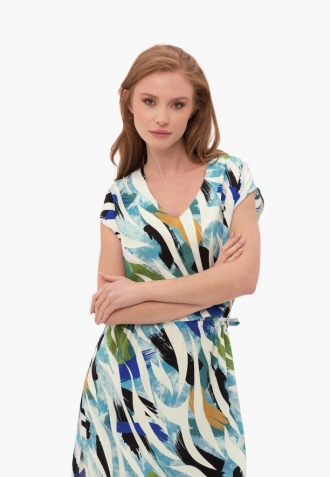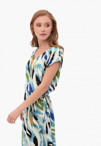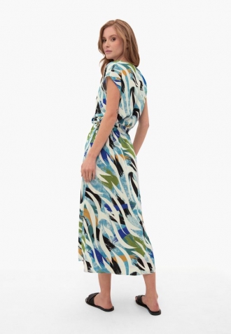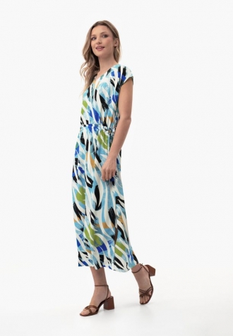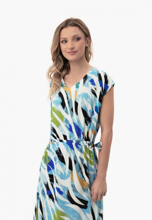 Šaty ideální pro letní procházky, setkání s přáteli nebo dovolenou? Takové jsou vzorované šaty G-MILOS ušité ze 100% viskózy. Přírodní tkanina zajišťuje vynikající prodyšnost a pohodlí, díky čemuž jsou šaty skvělou volbou pro letní dny. Jejich rovný střih, zavázaný v pase, jemně zvýrazňuje postavu a zároveň zaručuje pohodlí a volnost pohybu. Maxi šaty se vyznačují výstřihem do V, který dodává ženský půvab, a rukávy a’la kimono, které dodávají celku lehkost a stylový charakter.