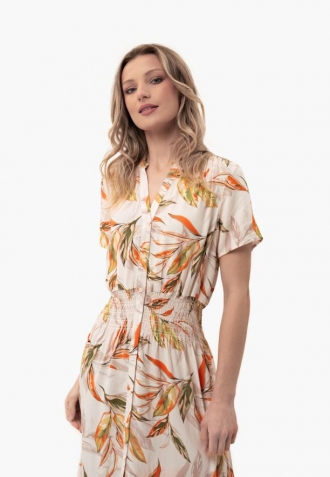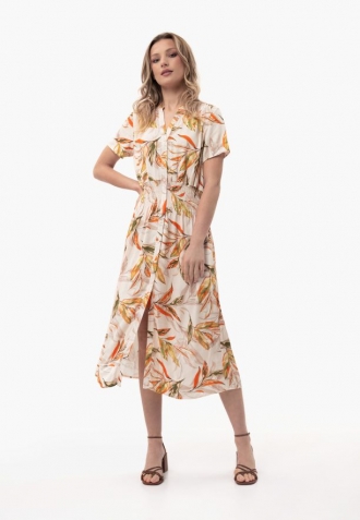 Košilové šaty jsou must have v každém ženském šatníku. Košilový střih je činí nejen pohodlnými a funkčními, ale také snadnými na stylizaci. Ženský výstřih do V v kombinaci s knoflíky po celé délce dodává košilovým šatům eleganci, přičemž si zachovává jejich volný charakter. Oranžová, béžová a zelená barva dokonale zdůrazňují letní styl šatů.