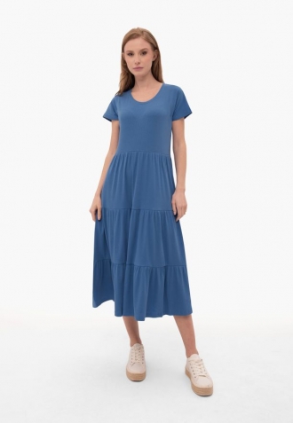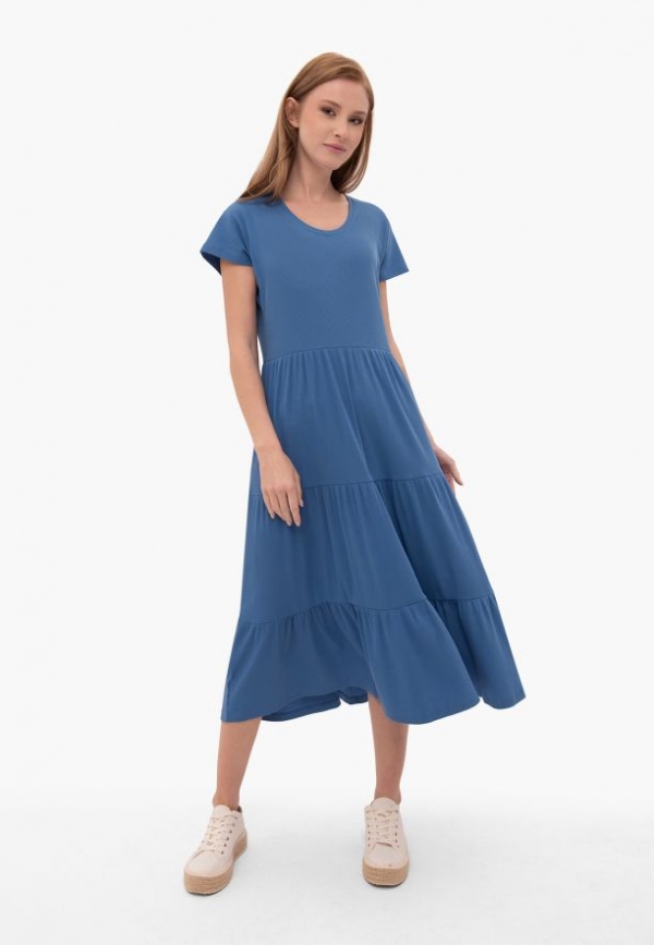Hledáte šaty na jaro a léto? Určitě si prohlédněte dlouhé šaty G-OLEA. Šaty jsou ušity z pružného úpletu, který krásně sedí na postavě. Žebrovaný materiál dokonale odpovídá současným módním trendům a dlouhý střih, v pase přestřižený, je velmi pohodlný a neomezuje v pohybu. Půlkruhový výstřih dodává modrým šatům jemnost.