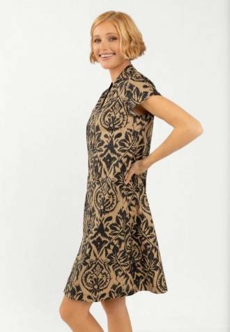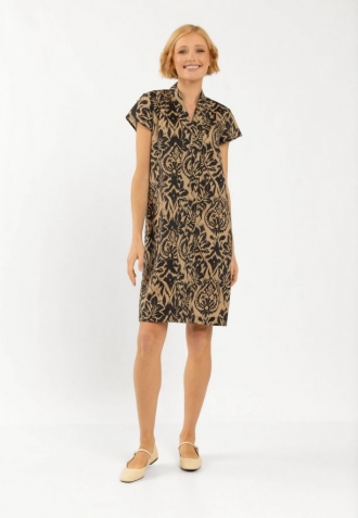 Světle hnědé šaty v odstínu moka s černým orientálním vzorem jsou ideální volbou na léto pro ženy. Jsou vyrobeny ze vzdušného materiálu, takže poskytují vynikající pohodlí v horkých dnech, zatímco jejich oversize střih zaručuje lehkost a volnost pohybu. Orientální vzor dodává šatům jedinečný charakter a vnáší do letních stylizací nádech exotiky.