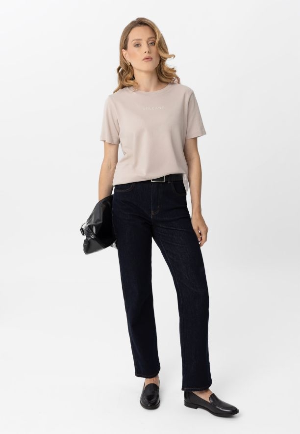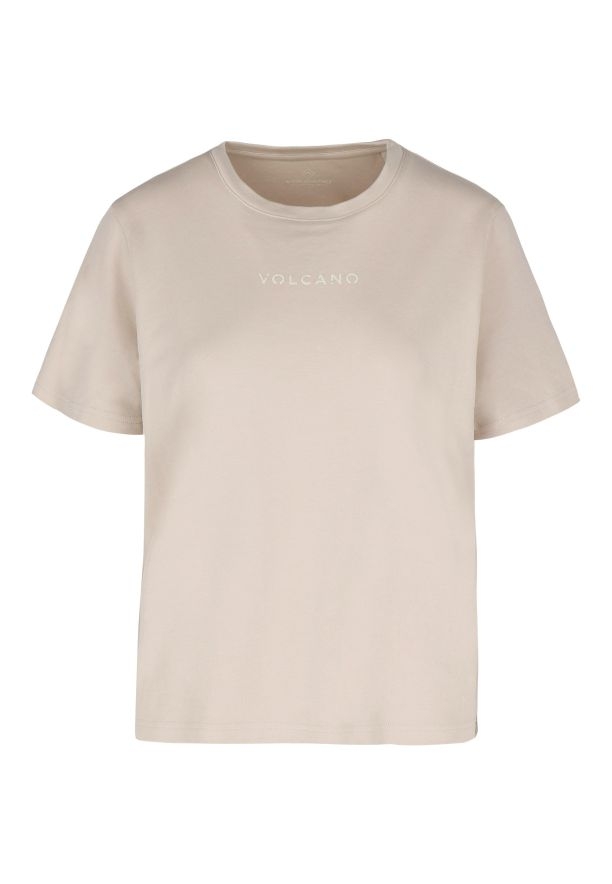 Volný, krabicový střih (comfort fit) trička nabízí volnost pohybu a skvěle vypadá na každé postavě, maskuje případné nedokonalosti a dodává stylizacím ležérnost. Centrálním bodem dámského trička T-AVI je subtilní, ale efektní třpytivý nápis "VOLCANO", který dodává tričku jemný, třpytivý akcent. Ideální pro každodenní nošení – jak k džínům, šortkám, tak i k elegantnějším sukním nebo kalhotám. Je to univerzální prvek šatníku, který vám umožní vytvořit mnoho módních a komfortních stylizací.