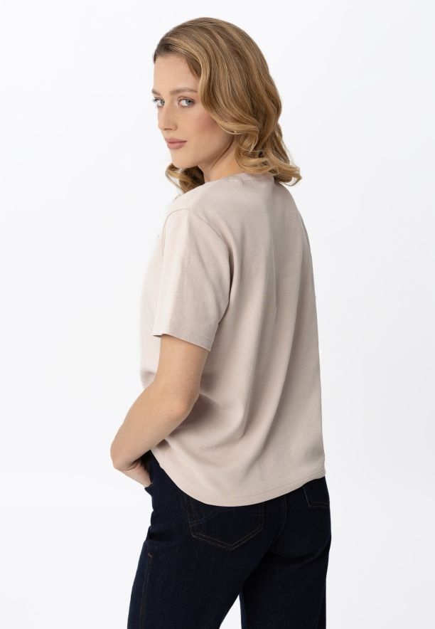 T-AVI je dámské tričko v klasické béžové barvě. Vyrobeno ze 100% bavlny s gramáží 220 gsm, tričko je mimořádně měkké, příjemné na pokožku a zajišťuje vynikající prodyšnost, zaručujíc komfort nošení po celý den. Gramáž 220 gsm znamená, že materiál je pevný a trvanlivý, a zároveň si zachovává měkkost a není příliš tlustý, což způsobuje, že tričko se krásně skládá a je ideální pro mnoho ročních období.