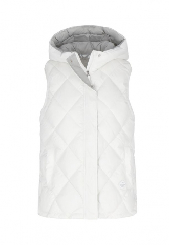 Prošívaná dámská vesta V-MILAN se skvěle osvědčí jako dodatečná vrstva oblečení v chladnějších dnech, jak na svetr, mikinu, tak i longsleeve. Kapuce dodává funkčnost, chrání před větrem a lehkým deštěm, a dvě praktické kapsy umožňují bezpečné uložení drobných předmětů. Neutrální, bílá barva způsobuje, že vesta se snadno začlení do vašeho šatníku.