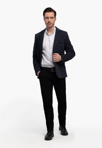 Pletené sako je skvělou volbou pro muže, kteří si cení pohodlí, aniž by se vzdali stylu. Díky elastickému materiálu se přizpůsobí postavě a zajišťuje komfort nošení po celý den. Jeho tlumená, tmavě modro-melírovaná barva se skvěle hodí k většině šatníku a klasický střih s klopami a dvěma kapsami s patkami zapadá do aktuálních trendů pánské módy.