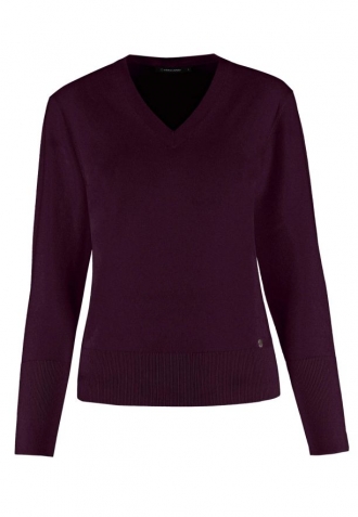 Svetr S-NELI, vyrobený z hladkého úpletu, zaujme jednoduchým, ale zároveň stylovým designem. Jeho přiléhavý střih Slim Fit podtrhuje ženské tvary a výstřih do V mu dodává jemnost a ženský šarm. Zakončení na manžetách a spodním lemu širokými žebrovanými manžetami zajišťuje nejen dokonalé přizpůsobení, ale také odolnost, díky čemuž se z něj budete těšit mnoho sezón. Je třeba zdůraznit, že manžety mají jemné, ozdobné rozparky a vínový svetr s výstřihem do V je k dispozici také ve velkých velikostech.