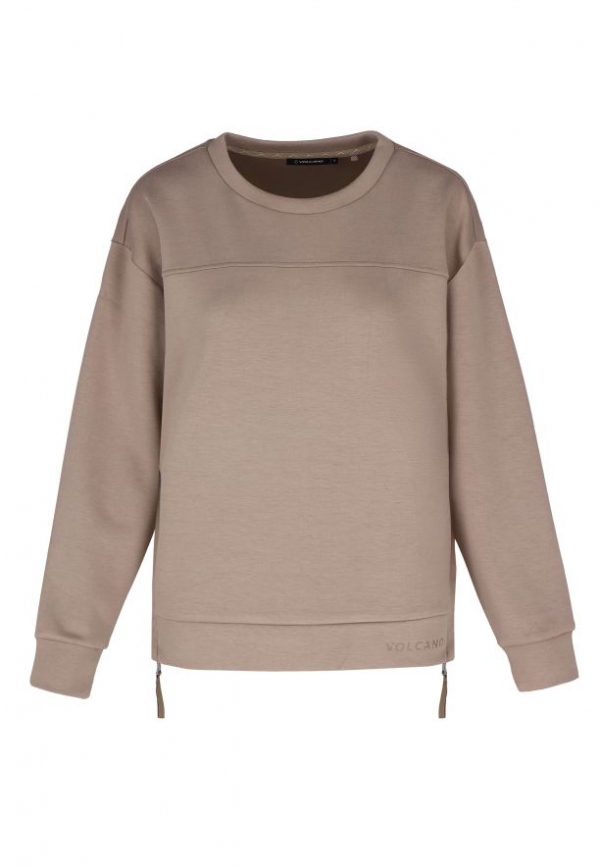 B-SANI je volná dámská mikina vyrobená z materiálu typu "pěna", který je směsí viskózy, polyesteru a elastanu. Takové složení zajišťuje prodyšnost mikiny a mimořádnou měkkost a elasticitu, dokonale se přizpůsobujíc postavě. Volný střih, zdůrazněný sníženou linií ramen, zaručuje volnost pohybu, a lemy na manžetách a na spodním lemu mikiny se starají o komfort nošení. Dodatečným, módním akcentem jsou kovové zipy umístěné po stranách, které nejenže dodávají mikině unikátní charakter, ale také umožňují subtilní regulaci její šířky, dodávajíce prvky praktičnosti k designu.
