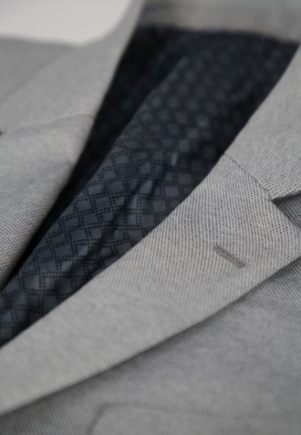 Grafitové pánské sako JB-RIZE je esence moderní elegance spojená s komfortem nošení. Jeho klasický střih se dvěma knoflíky v jedné řadě a otevřenými klopami se dokonale osvědčí v různorodých stylizacích, od kancelářských po casualové. Subtilní vazba látky mu dodává unikátní charakter, a detaily, jako imitace knoflíkové dírky a kapsičky na hrudi nebo patky u kapes dole, zdůrazňují jeho promyšlený design. Celek doplňuje ozdobná podšívka a dva boční rozparky vzadu ve formě skladů, zajišťující volnost pohybu a bezchybné uspořádání materiálu.