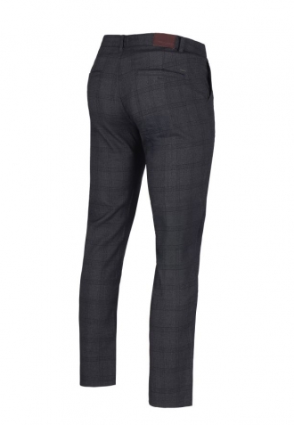 Pánské látkové kalhoty R-ASTON se vyznačují decentním vzorem. Jejich střih Regular Fit a károvaný vzor dokonale spojuje klasiku s moderností. Grafitová barva je prolomena decentním kárem typu glen check, které vytváří složitý, avšak tlumený vzor. Tento jemný vzor dodává kalhotám eleganci a umožňuje jejich všestranné použití – od casualových po smart casualové stylizace.
