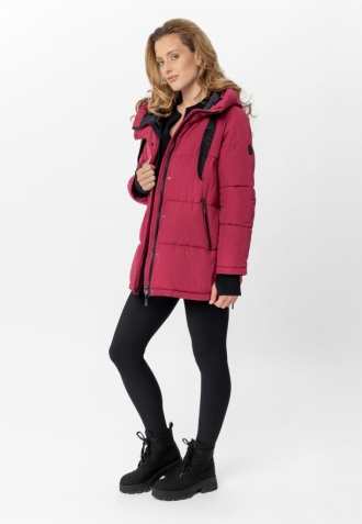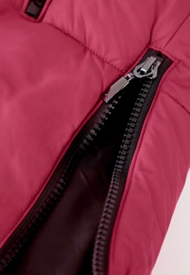 Prošívaná bunda v růžové barvě je vybavena dvěma praktickými bočními kapsami, které jsou se zapínáním na zip, což umožňuje bezpečné uložení drobných předmětů. Další předností jsou boční zipy, které umožňují regulaci šířky bundy, přizpůsobujíc ji individuálním potřebám a postavě. Komfort nošení zvyšují také elastické a delší vnitřní manžety, které dokonale chrání před chladem a zabraňují vyhrnování rukávů.