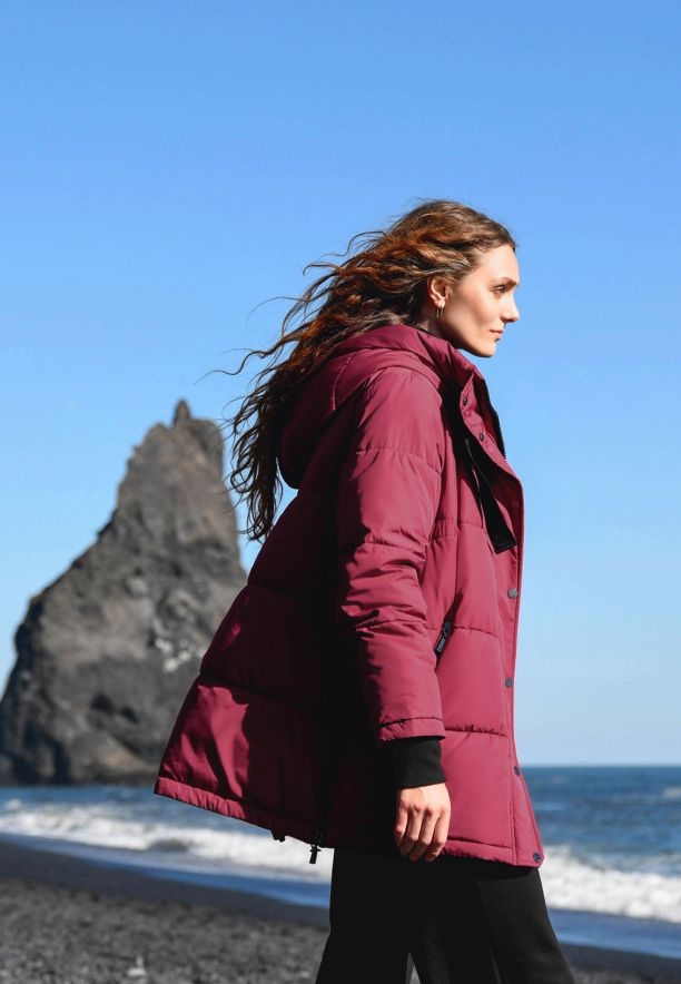 Zimní dámská bunda J-BLIS se vyznačuje široce prošívaným svrchním materiálem, který jí dodává moderní vzhled. Navíc, prošívání, rozdělující výplň na rovnoměrné komory, zajišťuje optimální a rovnoměrné rozložení výplně, což se promítá do tepelného komfortu. Střih bundy je jednoduchý, ale zároveň poněkud volnější, což zaručuje pohodlí nošení a umožňuje volné kombinování s různými prvky šatníku. Praktická kapuce s kontrastním vnitřkem a pásky na stahování zajišťuje dodatečnou ochranu před větrem a chladem. Bunda se zapíná na dvoucestný zip, skrytý pod lištou s patentkami, což dodatečně chrání před profouknutím.