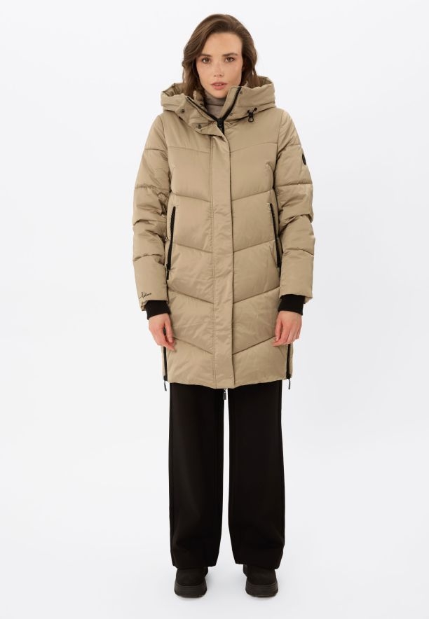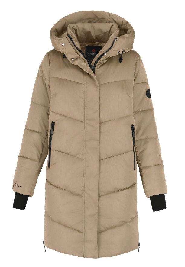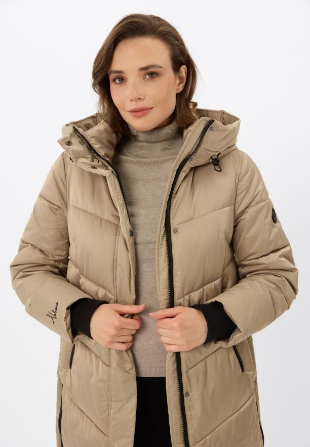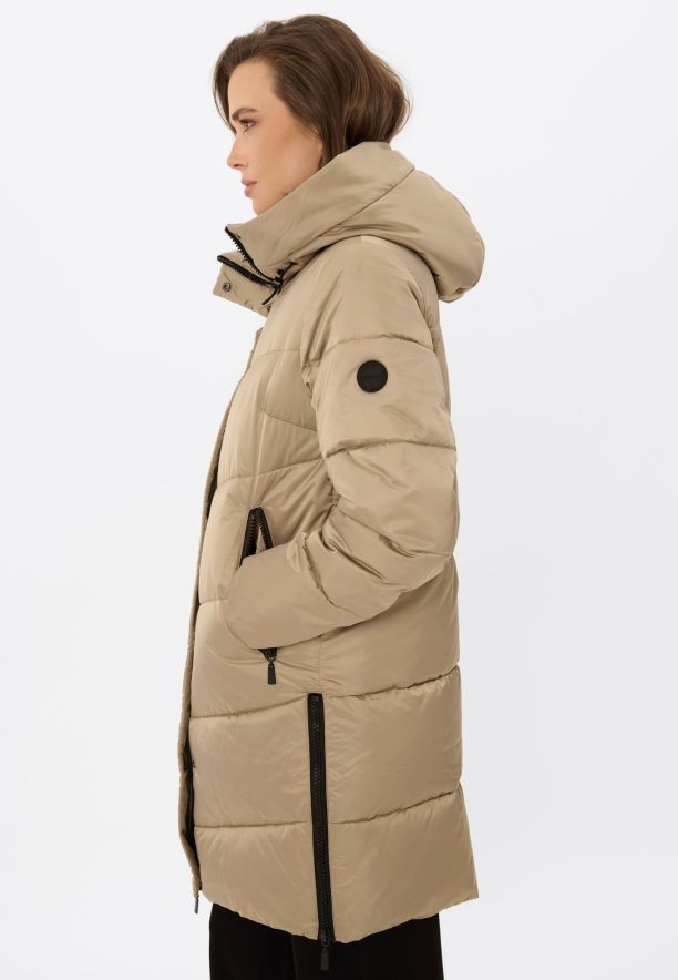 Tento dámský zimní kabát je ideální volbou pro chladné dny. Díky výplni z polyesterových vláken dokonale izoluje teplo a zajišťuje komfort i při velmi nízkých teplotách. Prošívaný kabát má praktickou kapuci s možností regulace a vysoký límec, který účinně chrání před větrem a sněhem. Dodatečné vybavení, jako jsou dvě kapsy na zip a elastické manžety, zvyšují pohodlí každodenního používání. Střední délka kabátu zajišťuje optimální ochranu před chladem, aniž by omezovala volnost pohybu.