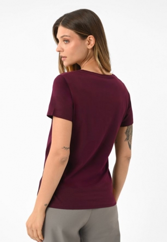 Kombinace jednoduchosti a moderního designu. Tak lze stručně popsat bordó tričko T-MONIC. Vyrobeno z bavlny s příměsí elastanu, zajišťuje komfort nošení po celý den, i v teplejších dnech. Volnější, ale stále zvýrazňující postavu střih a klasický kulatý výstřih zajišťují, že tričko skvěle sedí na těle a zároveň neomezuje v pohybu. Tmavě vínová barva mu dodává elegantní charakter a hodí se jak pro každodenní nošení, tak i pro ležérnější styly.