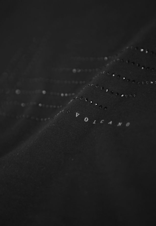 Minimalistický vzor z drobných kamínků/krystalků uspořádaných do geometrického vzoru dodává celku moderní akcent, aniž by dominoval celkovému vzhledu. Tričko se skvěle hodí k džínům, šortkám nebo pod sako, čímž tvoří univerzální prvek šatníku. Je to ideální volba pro ženy, které si cení pohodlí a decentního stylu pro každý den.