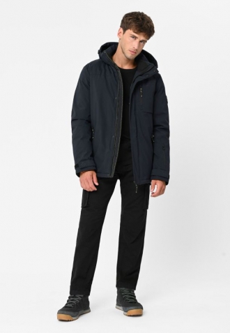 Tato pánská bunda je ideální volbou pro chladnější dny. Vybavená membránou, zajišťuje voděodolnost 5000 mm H2O, účinně chrání před deštěm a vlhkostí. Současně se vyznačuje vysokou prodyšností, což zaručuje komfort nošení a odvádění přebytečné vlhkosti ven, zabraňujíc přehřívání. Hladký vnější materiál dodává eleganci, a silná, prošívaná podšívka zajišťuje vynikající tepelnou izolaci. Jednoduchý střih sahající k bokům a odepínací kapuce s ukrytou šňůrkou a stojáček vyložený fleecem dodatečně zvyšují ochranu před zimou a větrem. Navíc jsme tuto zimní bundu vybavili vnitřním lemem na spodním lemu, což umožňuje ideální přizpůsobení a ještě lepší ochranu před chladem.
