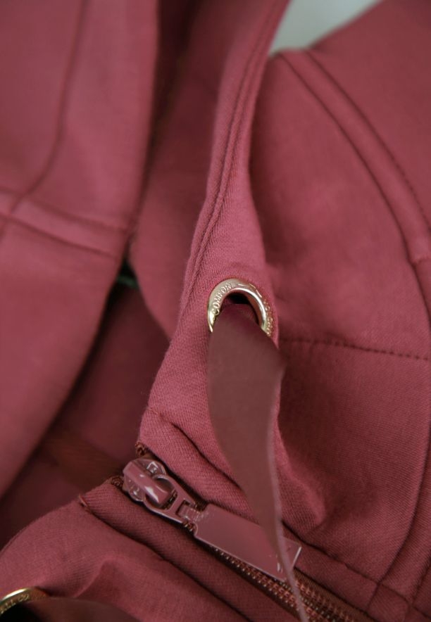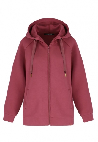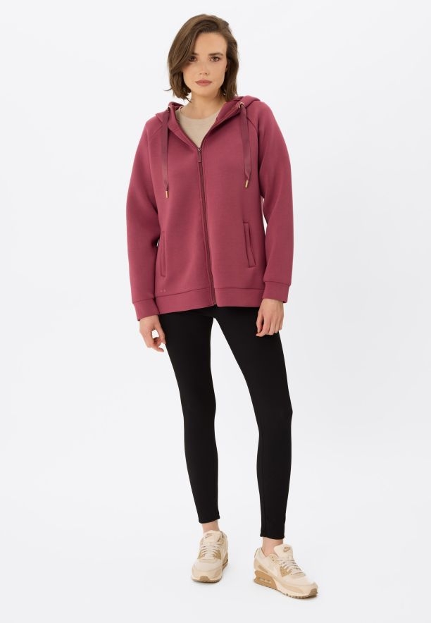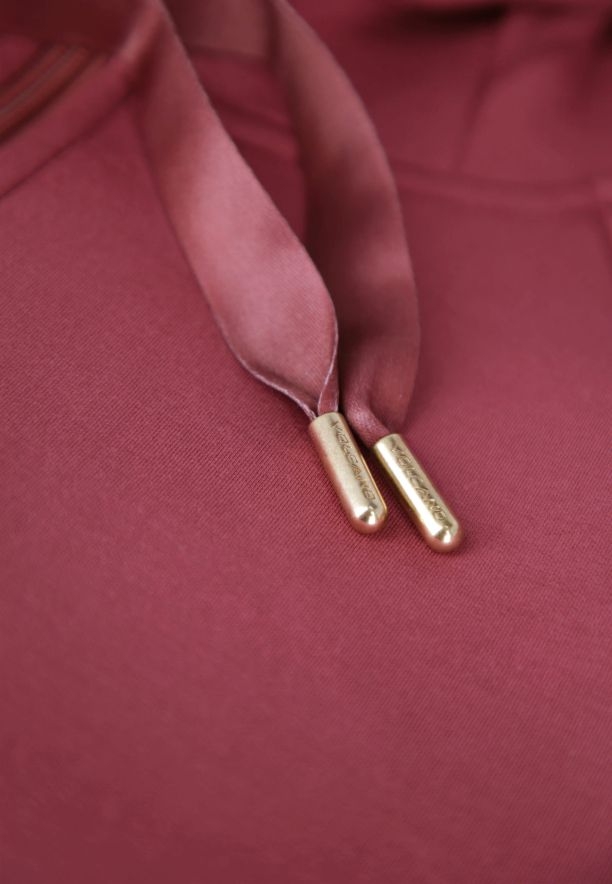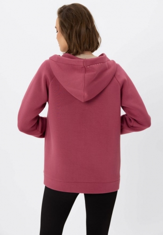 Pro zvýšení komfortu nošení naše návrhářky přidaly k mikině prostornou kapuci, ozdobenou širokými šňůrkami. Díky tomu tato dámská mikina získává sportovní, a zároveň stylový charakter. Funkčnost dodávají dvě vsazené kapsy, ideální pro zahřátí rukou nebo uložení drobných předmětů.