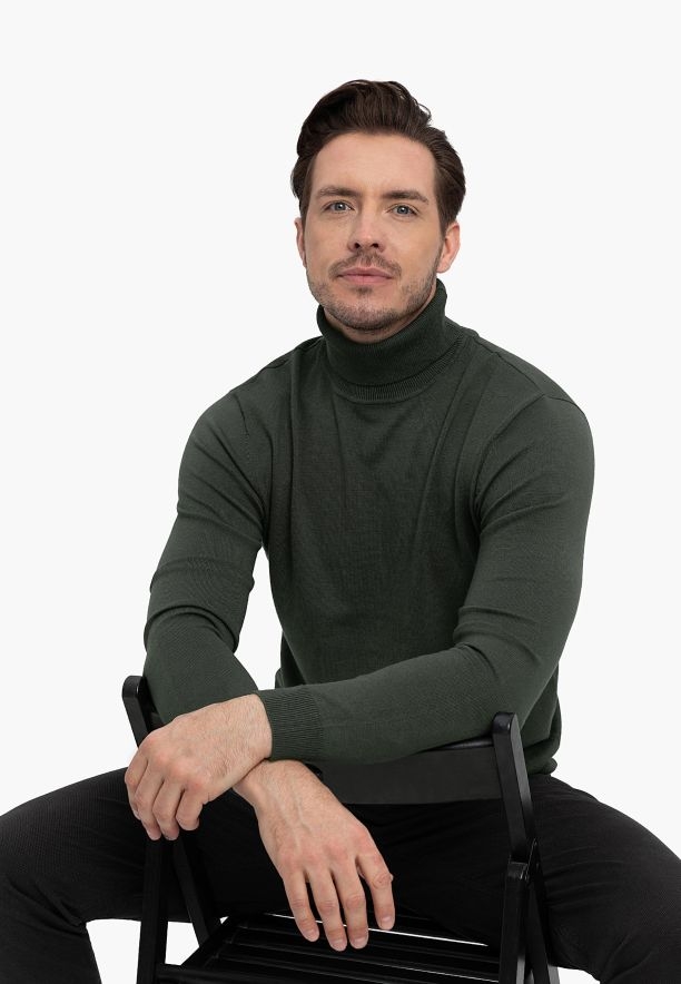 Zelený pánský rolák S-MAX má klasický střih a vyznačuje se minimalistickým designem. Protože je ušitý z lehké pleteniny s klasickou vazbou, osvědčí se jak na podzim, v zimě, tak i na jaře v chladnější den. Pletenina je měkká a příjemná na dotek, což zvyšuje komfort nošení.